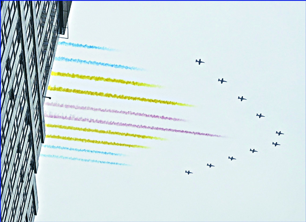 Helicopters and fighter jets formed the numerals "100" and "71" as they flew over the skies of Tiananmen Square in an aerial performance marking the Chinese Communist Party's centennial.