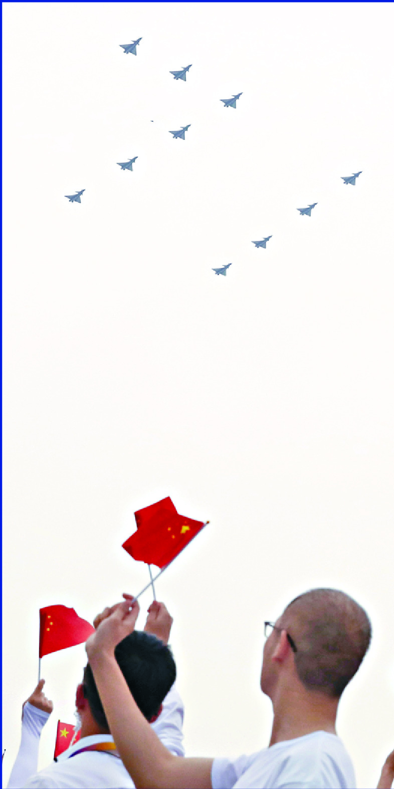 All aircraft in the performance were domestically developed and manufactured, which shows the rapid development of China's aviation industry, he added.Five Z-8L helicopters also made their first appearance as they carried the party flag and slogans.