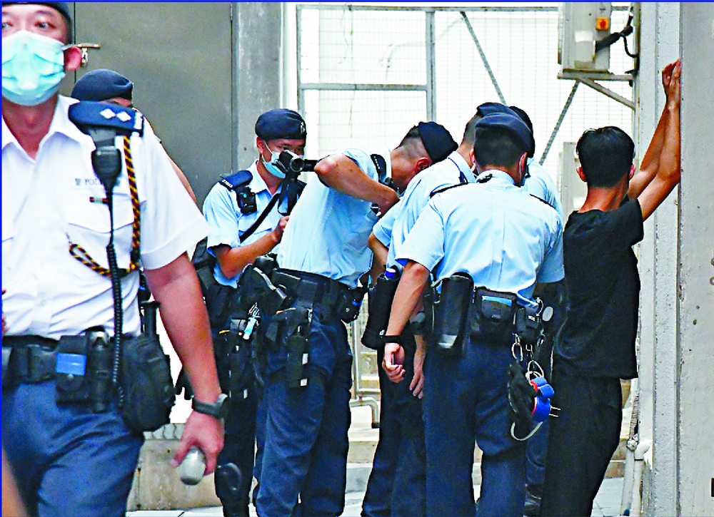 Police also said activist Alexandra Wong Fung-yin, nicknamed "Grandma Wong," was taken away for waving a British flag in Causeway Bay, near the Sogo department store.Police entered the mall Fashion Walk at about 4pm when some protesters went in after officers raised a yellow flag on Great George Street warning people against breaching the law.