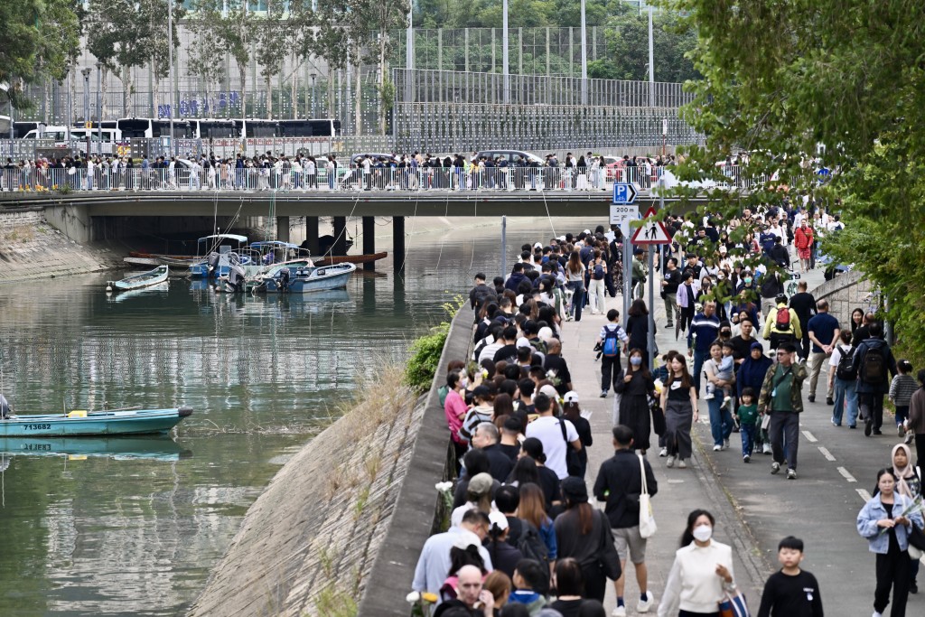At around 3pm, the queue of mourners extended from the sitting-out area along the Tai Po River footpath, winding to the Lam Tsuen River footpath, with the end of the line reaching Kwong Fuk Bridge Garden — with more people arriving to join continually.