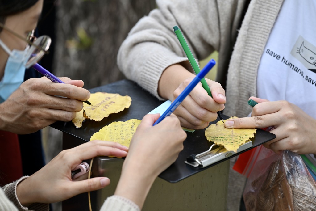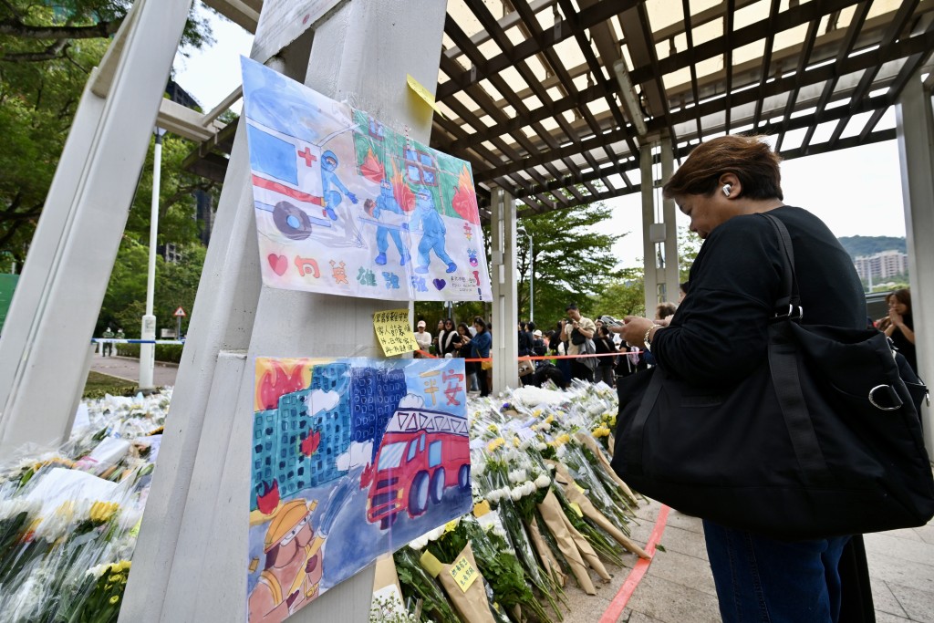 About 1,800 citizens gathered at Kwong Fuk Sitting-out Area on Sunday to write their tributes, lay flowers in memory of the victims of the devastating inferno at Wang Fuk Court in Tai Po.