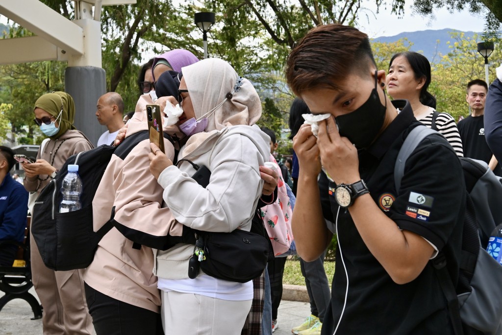 Lai, who traveled from Chai Wan, struggled to hold back tears. “I hope the departed souls rest in peace, while the living find the strength to carry on. We all feel so heartbroken — Hong Kong as a whole is mourning, so we must support one another and not dwell too much on it,”