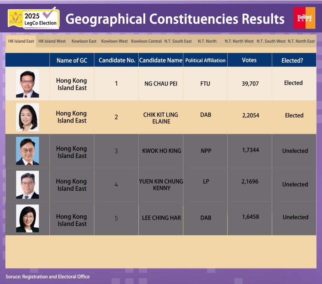 LegCo geographical constituency results out
