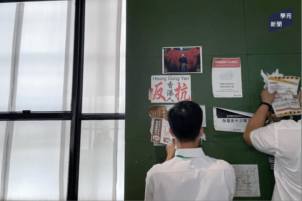 The University of Hong Kong has torn off all materials displayed on the democracy wall and outside the student union building, according to its student media outlets Campus TV and Undergrad.