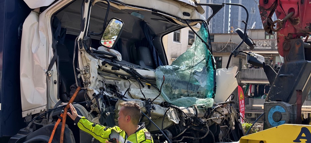 Truck crashes into grab truck in Sheung Shui, driver trapped