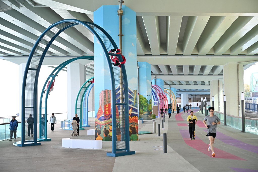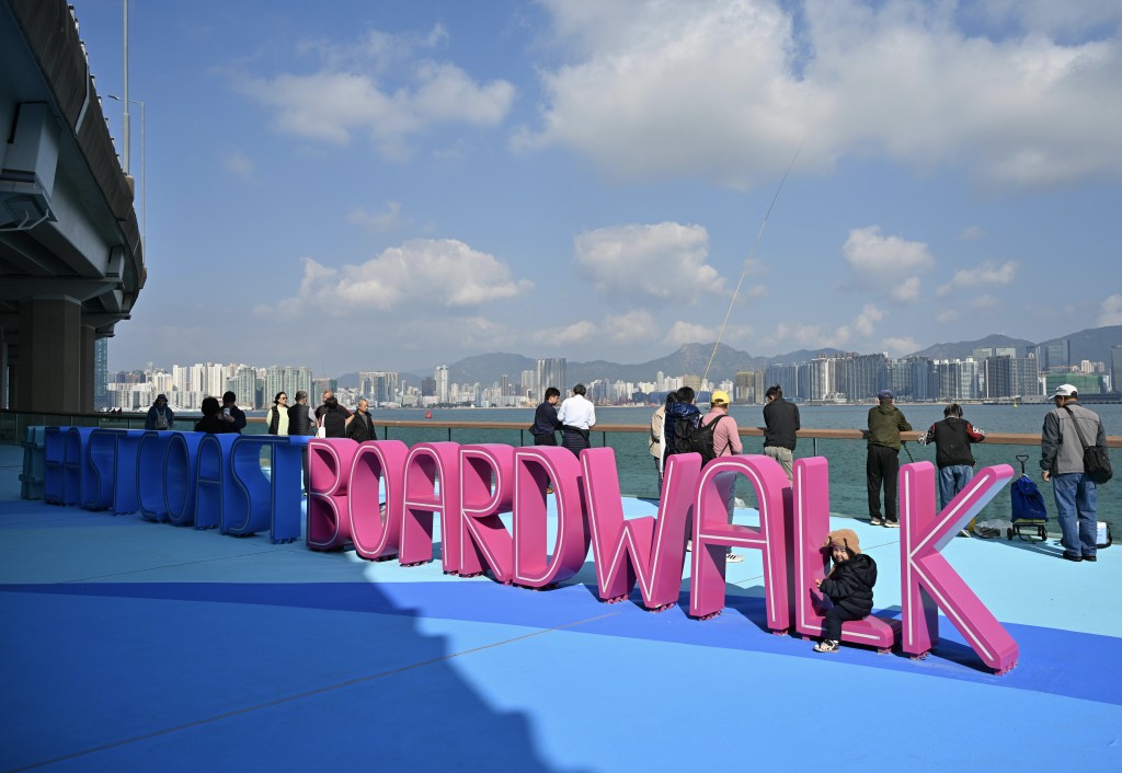 Many residents flocked to the newly opened section of the East Coast Boardwalk linking Hong Kong Island’s 13-kilometer promenade on Monday, with some praising the wide pathways and comfortable environments.