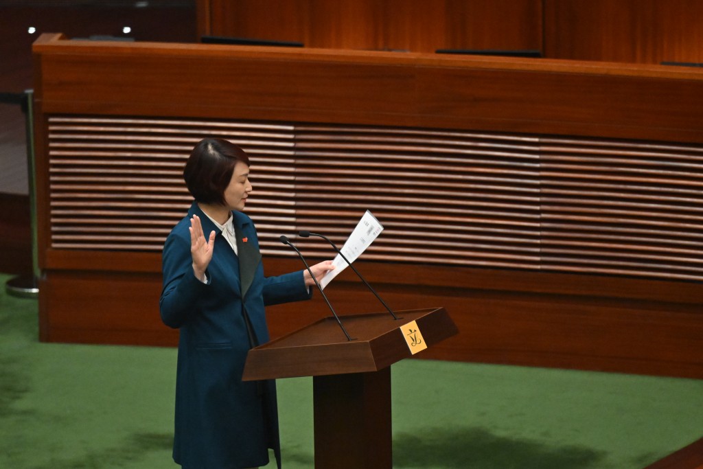 Starry Lee Wai-king from the Democratic Alliance for the Betterment and Progress of Hong Kong (DAB) was the first to take the oath, followed by fellow DAB lawmaker Gary Chan Hak-kan and the Business and Professionals Alliance's Priscilla Leung Mei-fun.