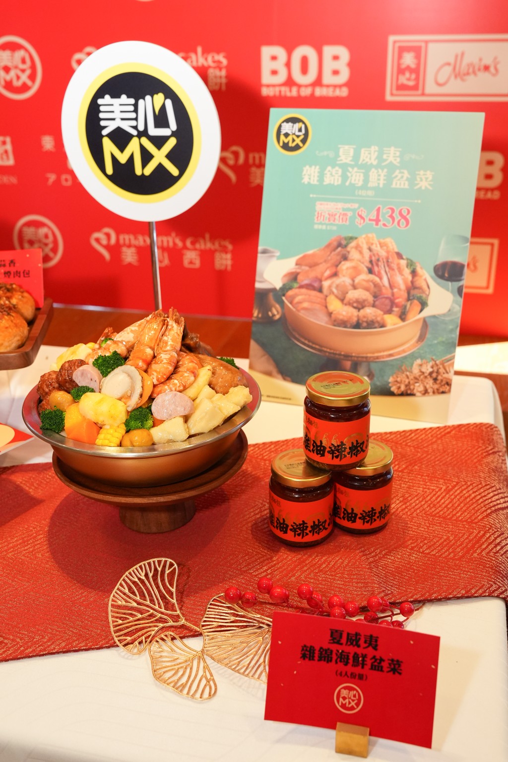 With Lunar New Year about one and a half months away, Maxim's Group unveiled a range of unique festive foods at today's tasting event, featuring upcycled crispy bread chili oil and creative cakes, puddings, and banquet dishes across its brands.