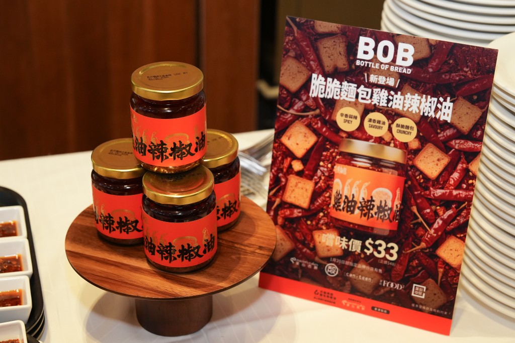 A highlight is the eco-friendly "Crispy Bread Chicken Oil Chili Oil" developed by Maxim's Food Factory, made from leftover bread fermented, baked into crunchy granules, and blended with house-made chicken oil fried with ginger and scallions, plus red chilies, finger chilies, and Sichuan peppercorns.