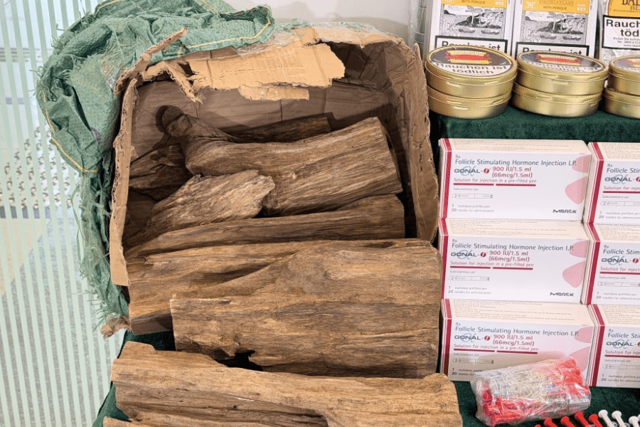 Subsequent inspections uncovered large quantities of undeclared goods, including about 400,000 capsules and 635 bottles of pharmaceutical products, 360 kilograms of tobacco, 5,800 vaping cartridges, 75 kilograms of bird’s nest, 43 kilograms of controlled shark fins, and 4 kilograms of agarwood.