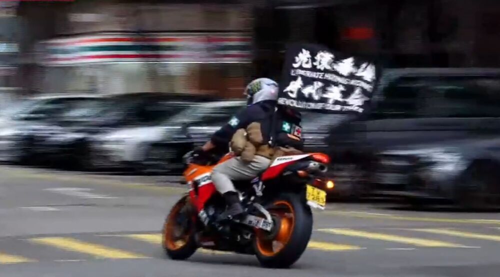 The court has heard that Tong rode his motorcycle into a group of police officers in Wan Chai while flying a flag with the "Liberate Hong Kong, revolution of our times" slogan on July 1 last year - the day the security law imposed by Beijing went into effect.
