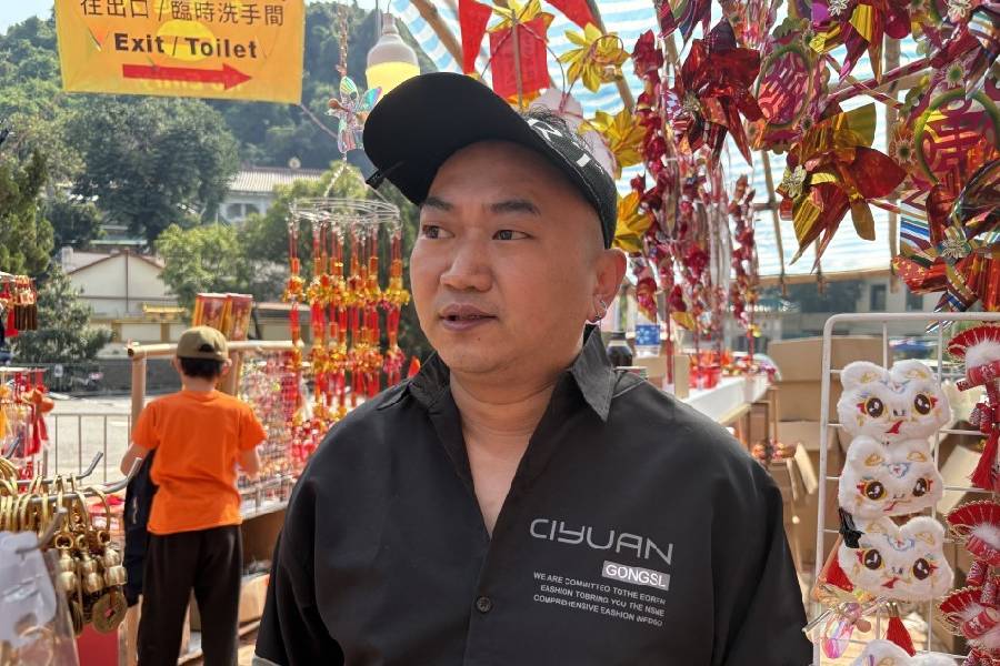 Devotees flocked to Che Kung Temple in Sha Tin on Wednesday, the second day of Lunar New Year, to pray, draw fortune sticks and buy windmills for good luck, with one stall reporting a 10 percent sales increase despite mixed crowd control views.