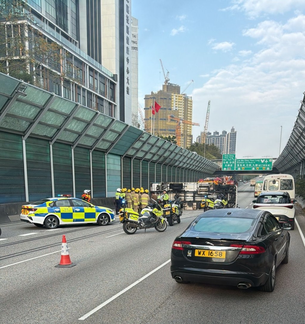 As a result of the crash, some lanes of Fanling Highway heading toward Yuen Long near the roundabout were temporarily closed, leading to traffic disruption during the morning rush hour.
