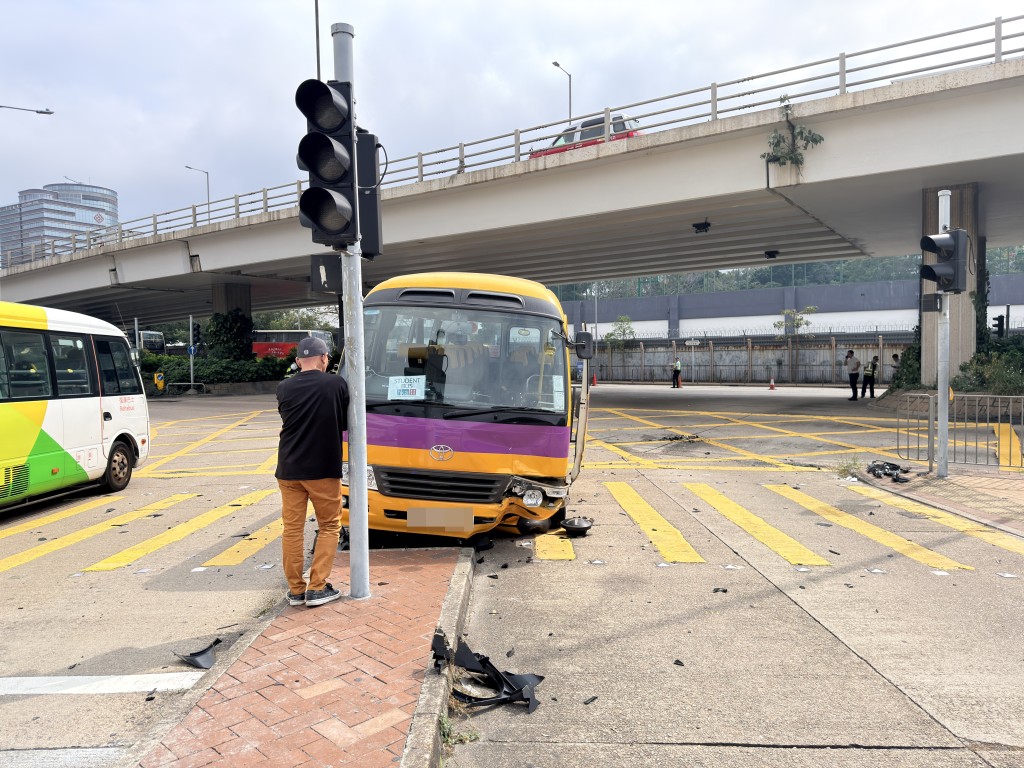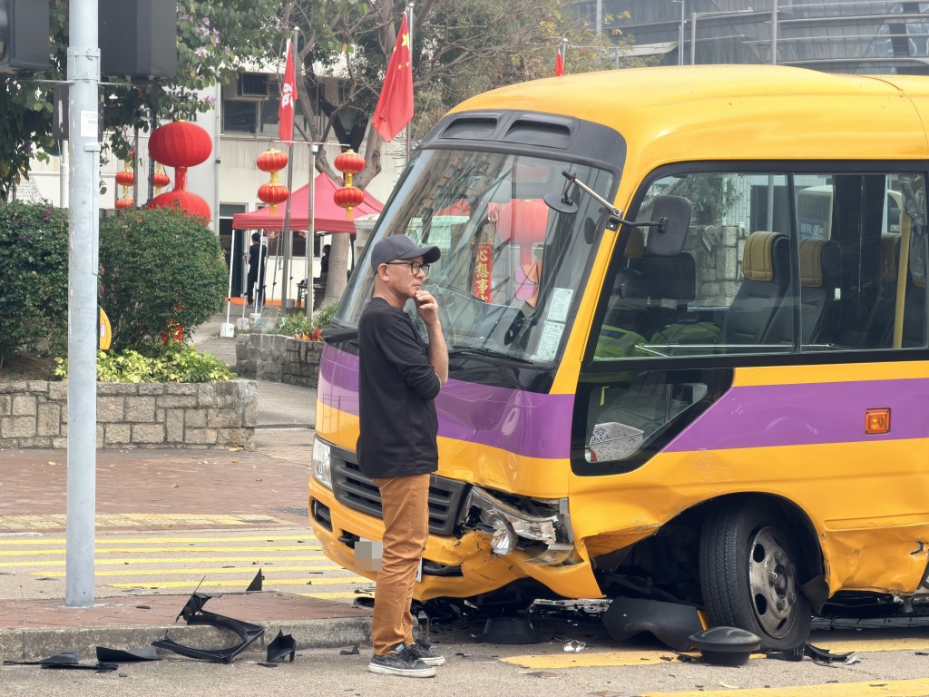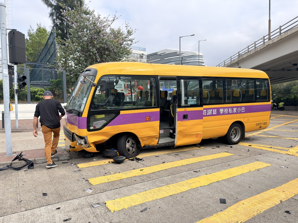 Two injured as school bus and Tesla collide in Yau Ma Tei
