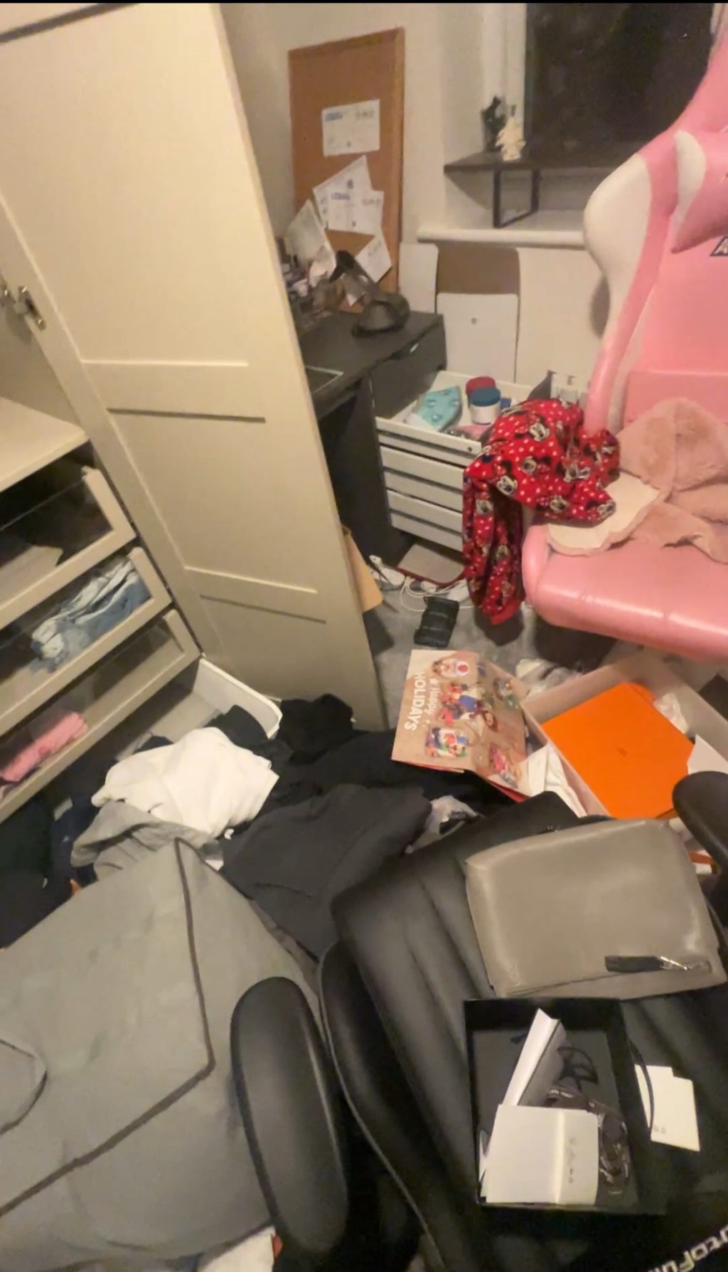 Images showed wardrobes, drawers and cabinets ransacked, with clothes, personal belongings and suitcases strewn across the floor.