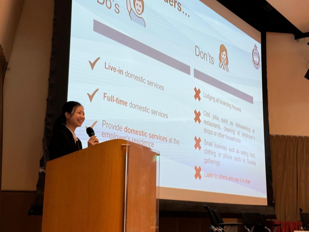 During the seminars, Immigration Department officers reminded participants that domestic helpers are only permitted to perform domestic duties for the employer specified in their employment contract. Attendees were also cautioned against engaging in illegal work or overstaying in Hong Kong.
