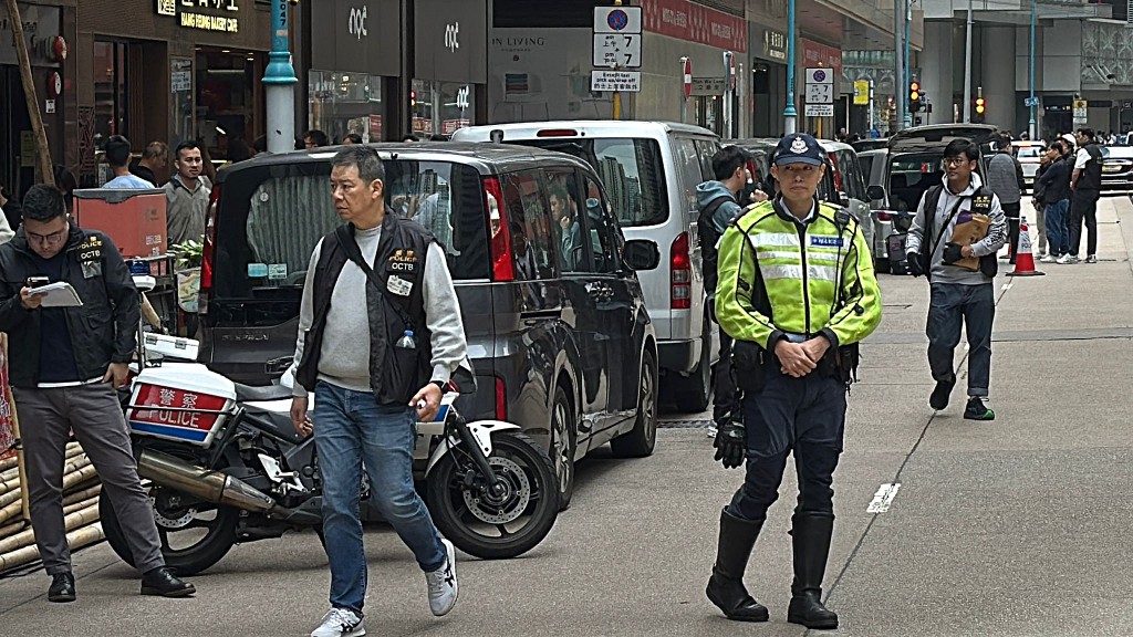 At the scene, police officers were seen conducting investigations at a nearby money exchange shop and cordoning off the suspected getaway vehicle. Two of the suspects were later seen assisting officers with inquiries inside the MTR station.
