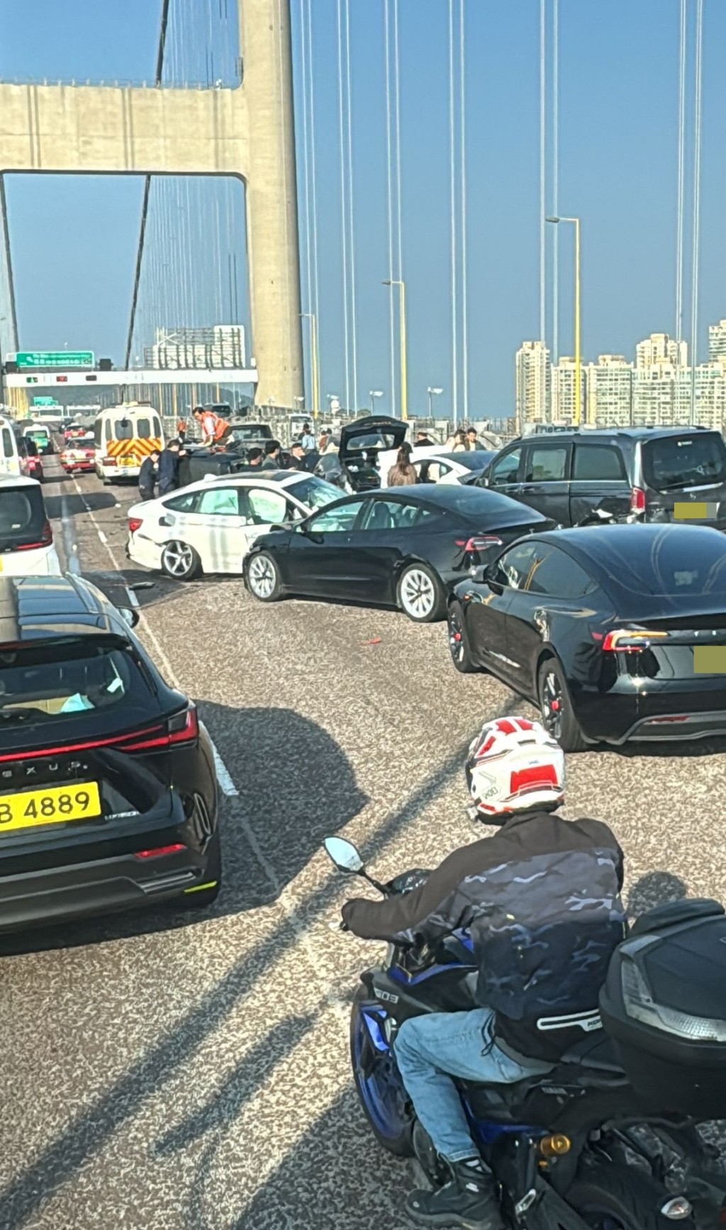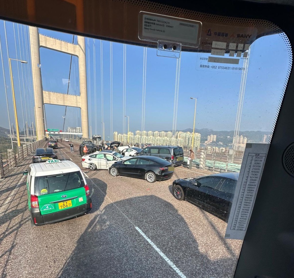 Police received a report at 8.31am of a traffic accident on the airport-bound lanes of the Tsing Ma Bridge near Ma Wan. The crash involved more than 10 vehicles in a chain collision.