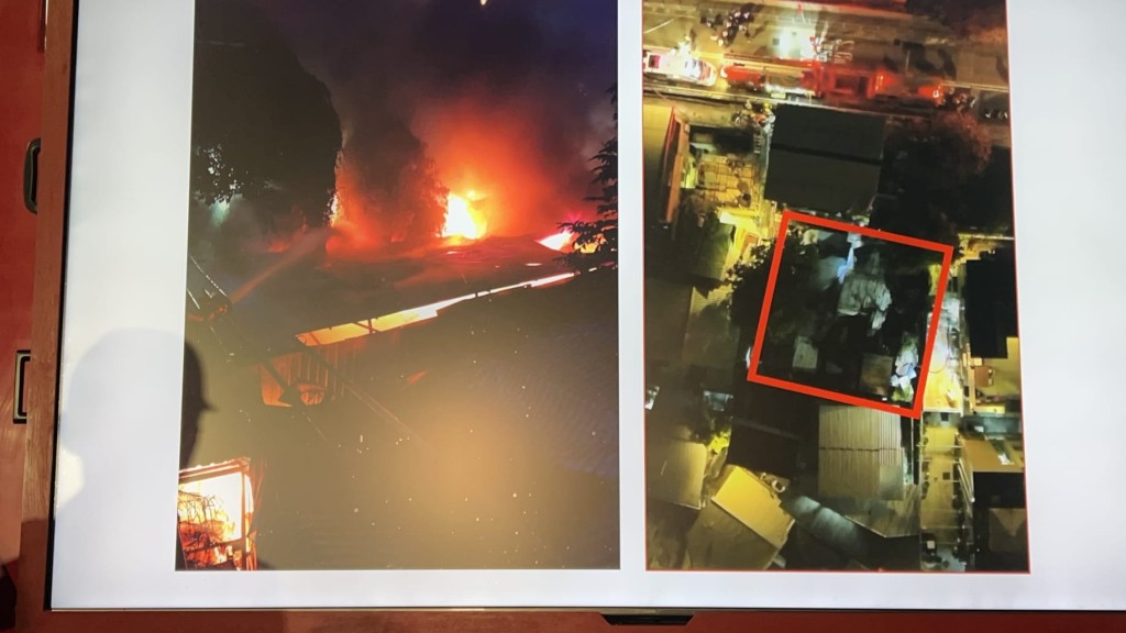 The blaze broke out around 9.48pm near Lo Wai Public School, engulfing two 10m x 10m structures built with tin sheets and bricks, with the ground and first floors of one building fully ablaze. Fire services upgraded the response to No 3 alarm at 10.07pm due to the intense flames threatening nearby buildings just 2-3 meters away.