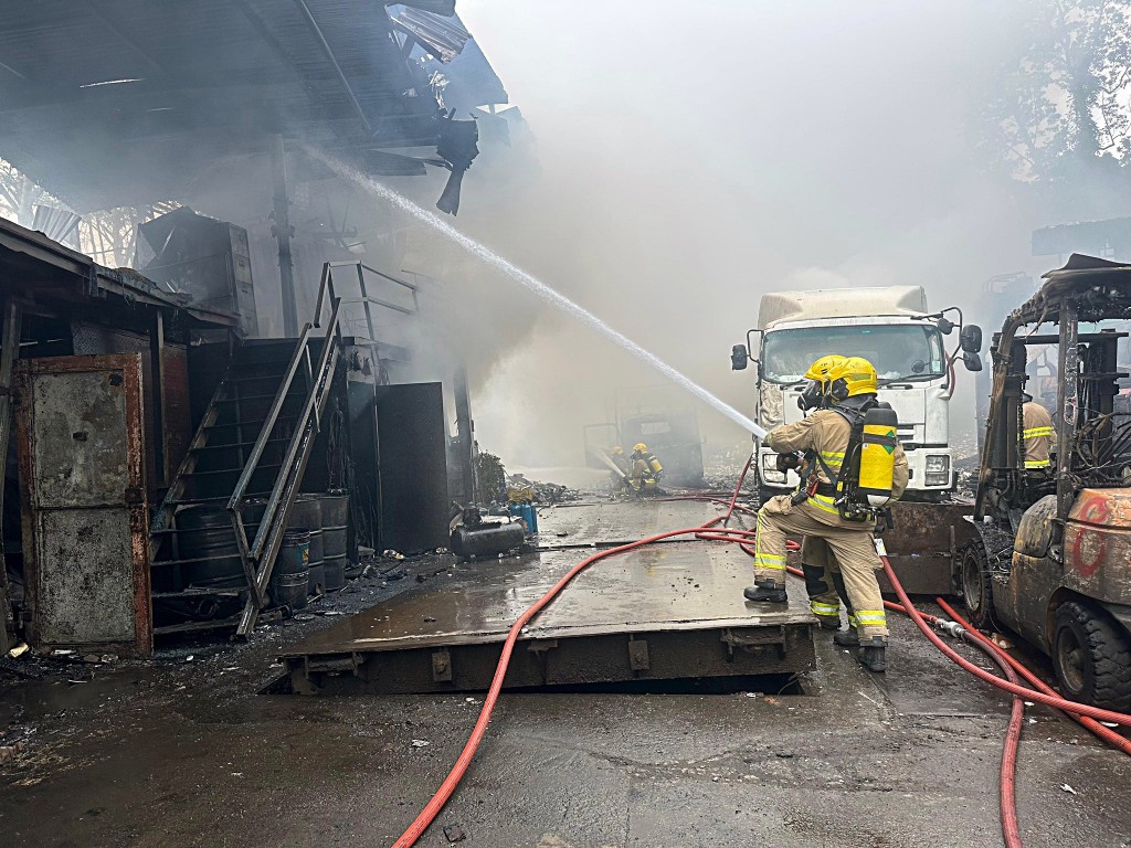 The Fire Services Department said it received a report of the fire at 11.01am at a recycling yard near Fung Yuen Road in Tai Po. Firefighting operations were ongoing.