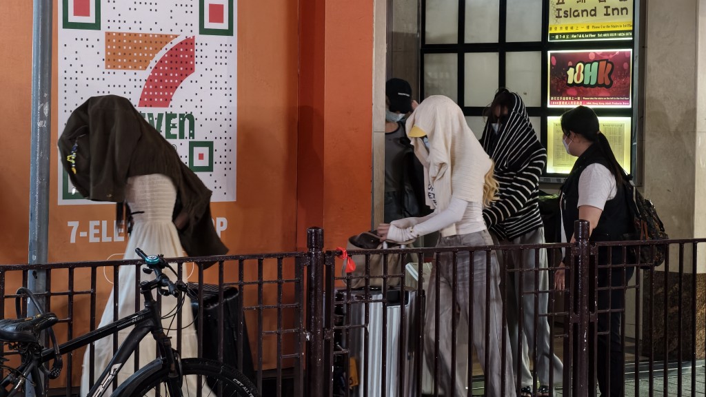 At the scene, some arrested women wearing short skirts were seen boarding police vehicles with their belongings and suitcases, some covering their faces with clothing. A large contingent of police officers, plainclothes detectives, and ImmD staff cordoned off the area, drawing crowds of onlookers.