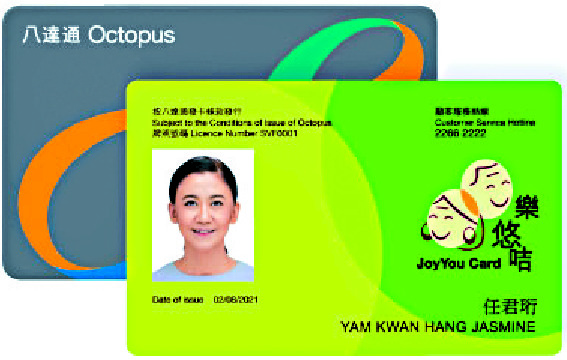 The card is part of a push to curb misuse of the elderly Octopus card scheme, with a JoyYou card carrying a photo and the name of the applicant.
