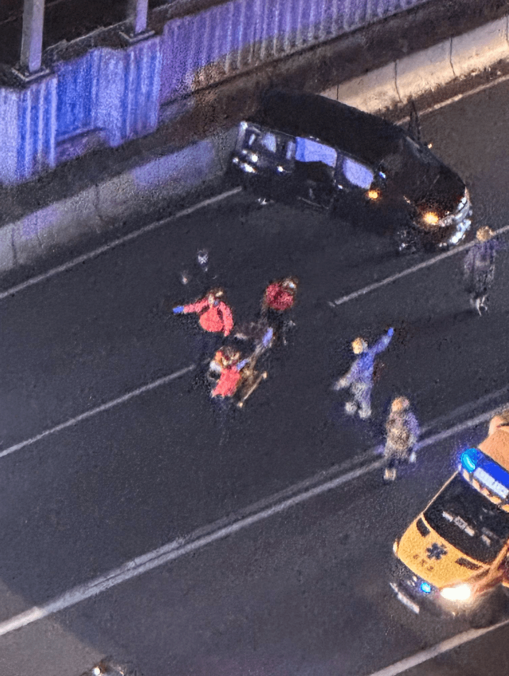 According to the car's driver, the accident was triggered when a vehicle ahead came to a sudden halt and a passenger disembarked.