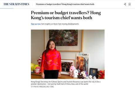 In an interview with Singapore’s The Straits Times, she said her ambition is for Hong Kong to be recognized as a premier destination not only for China but also for Asia and the world. The government outlined its annual tourism work plan to the Legislative Council on April 10, pledging to focus on “high-value”