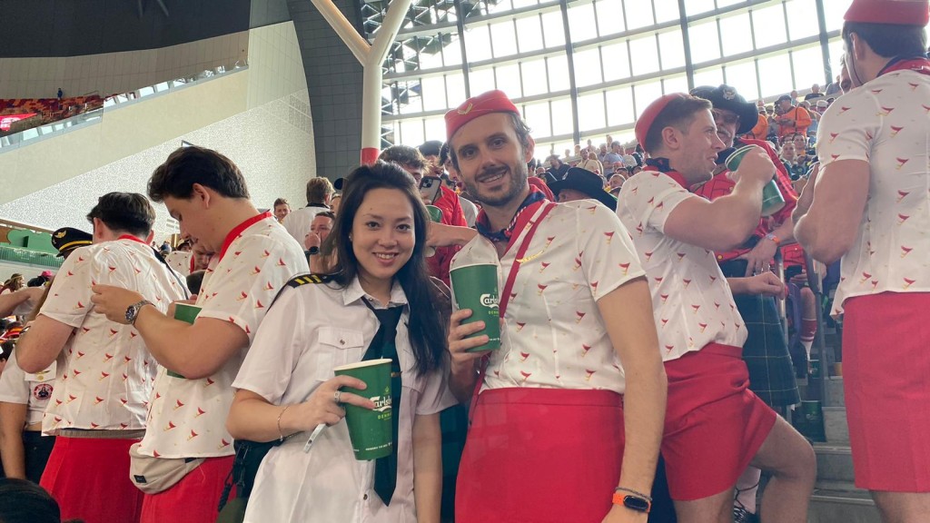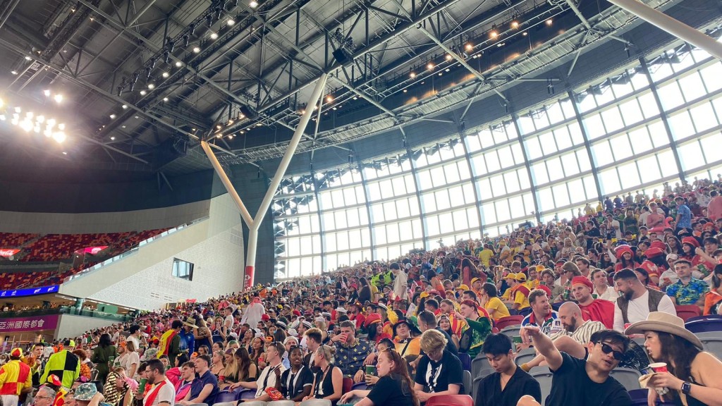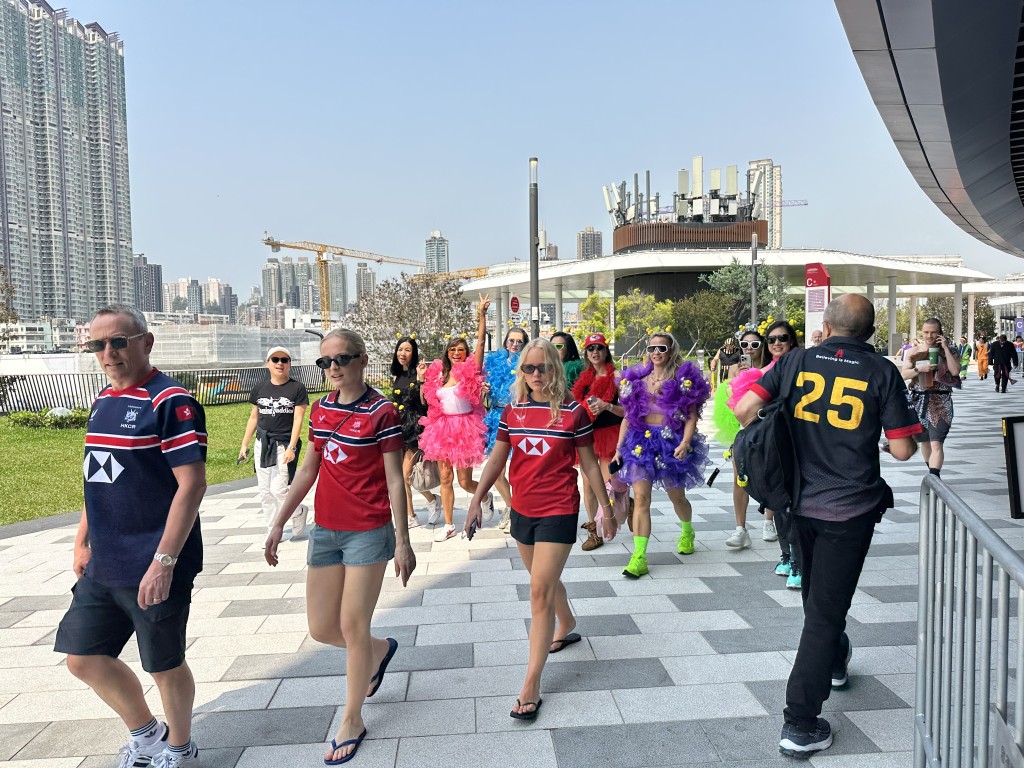 The second day of the annual Hong Kong Sevens tournament was in full swing, with thousands of enthusiastic fans flocking to the state-of-the-art Kai Tak Sports Park. Many arrived early, decked out in elaborate and imaginative costumes, eager to soak up the famously wild and festive atmosphere.