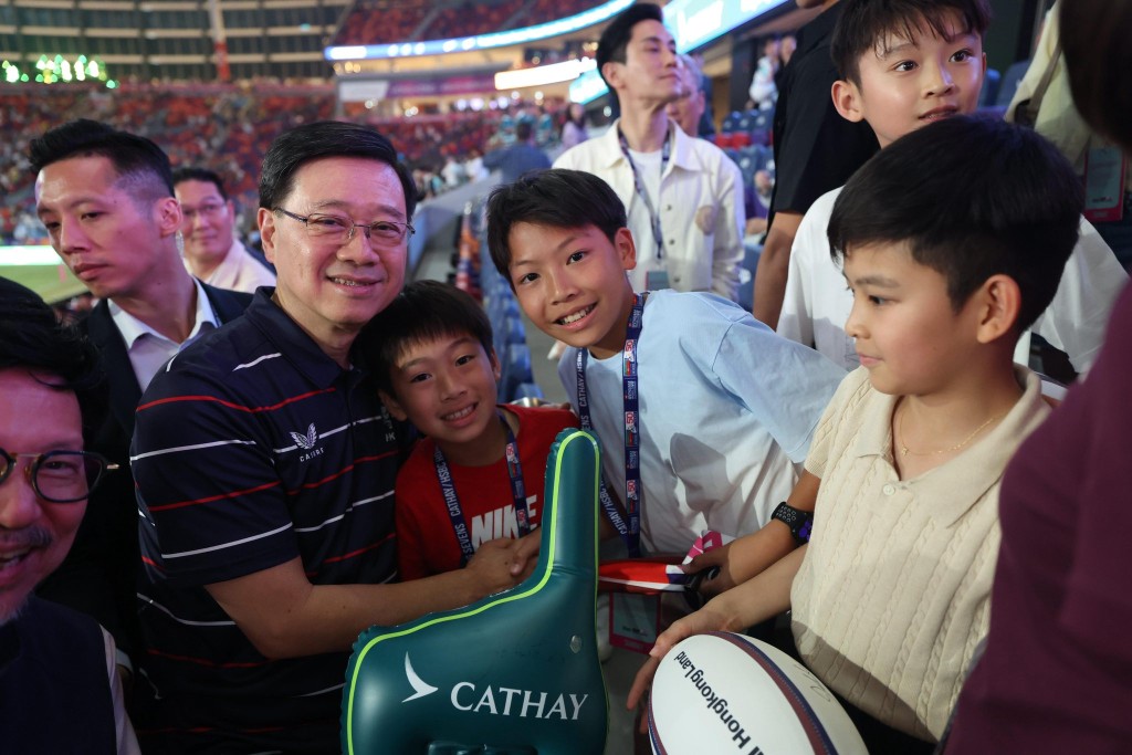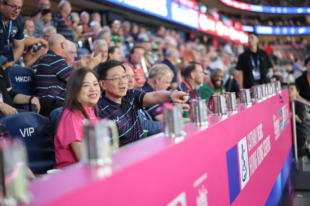 The chief executive noted that the fast-paced sevens, with players switching between attack and defence in seconds, showcases Hong Kong's vibrant and never-say-die spirit.