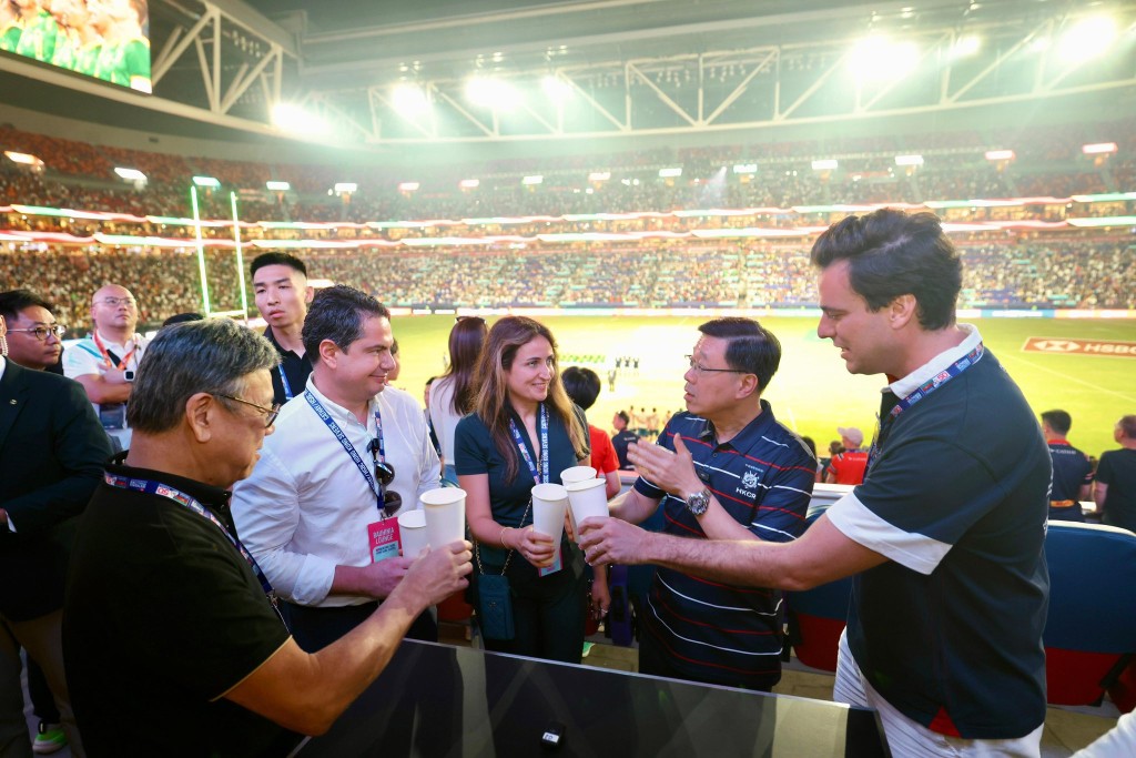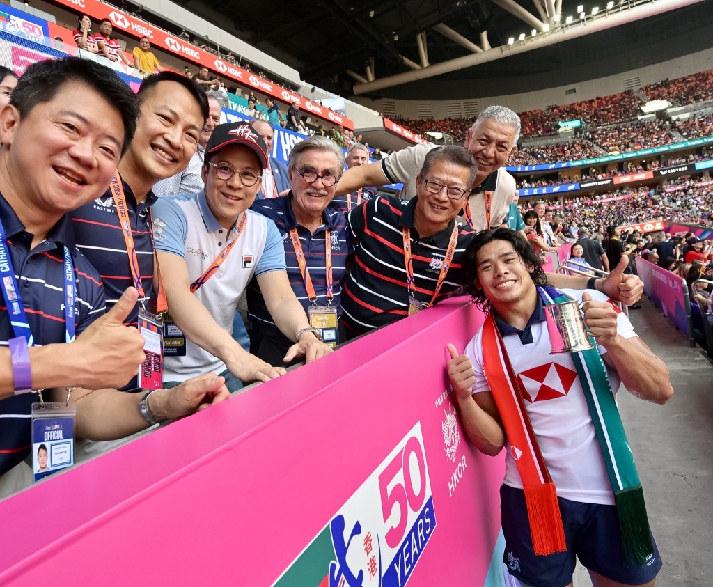 Financial Secretary Paul Chan also attended, watching Hong Kong win the Melrose Claymores against Japan. He described the atmosphere as "reaching its peak," with local fans passionately cheering for the team. Hong Kong secured their third consecutive Melrose Claymores title, winning 19-15.