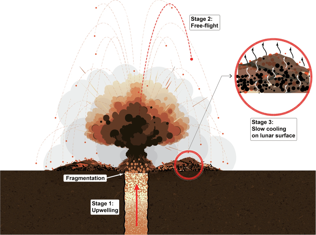 Previously, most scientists thought that lunar volcanic glass formed from the rapid cooling and degassing of magma during volcanic eruptions.