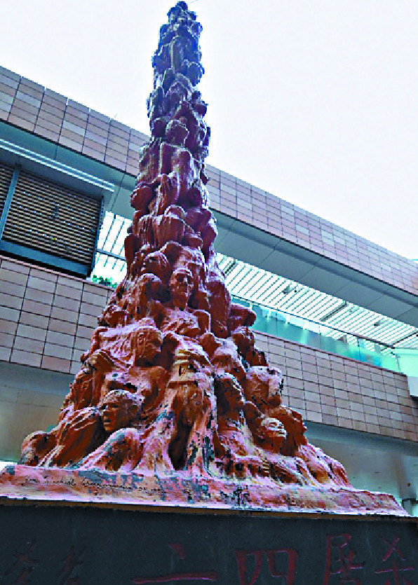 The Pillar of Shame statue was still standing tall yesterday at the University of Hong Kong, one day ahead of the university's deadline of removing the statue by 5pm today at the latest.