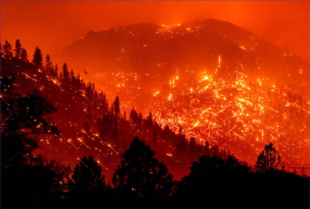 Boris Johnson opens a global climate summit yesterday as hillsides light up during the Dixie Fire in California in August. REUTERS, AP