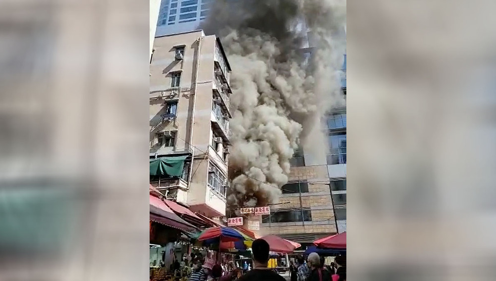 A Chinese bakery in Mong Kok had black smoke spew out of its premises into the sky following a small fire sparked by an overheated range hood.