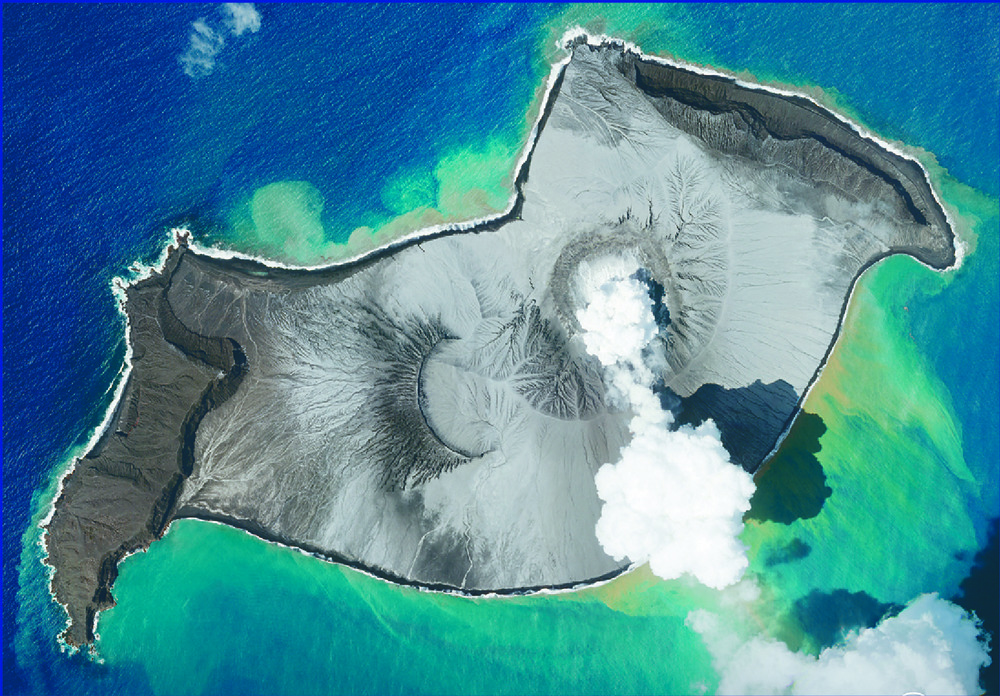 Satellite images showed the spectacular eruption of the Hunga Tonga Hunga Ha'apai volcano, about 64 kilometers north of the capital Nuku'alofa, on Saturday evening, with a plume of ash, steam and gas rising like a mushroom above the blue Pacific waters. A sonic boom could be heard as far away as Alaska.