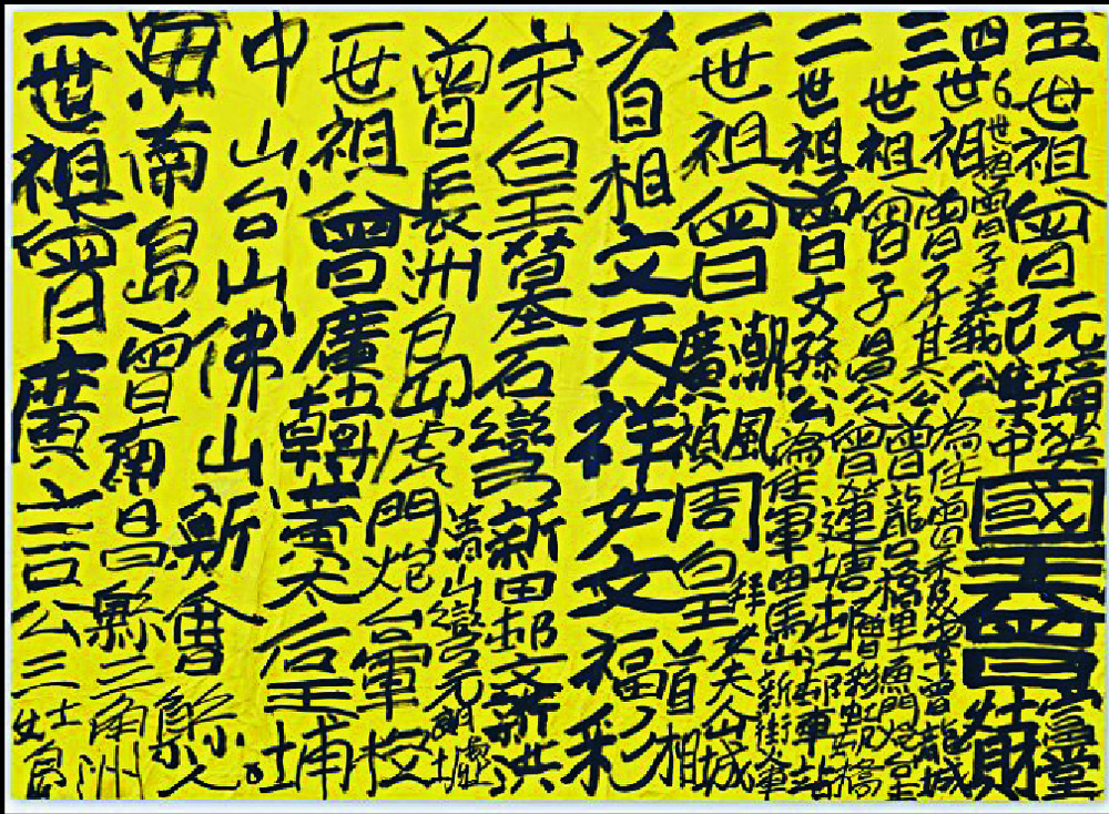 Tsang Tsou-choi, inset, and his potential artwork under a bridge. Below, his piece that sold for HK$212,500.