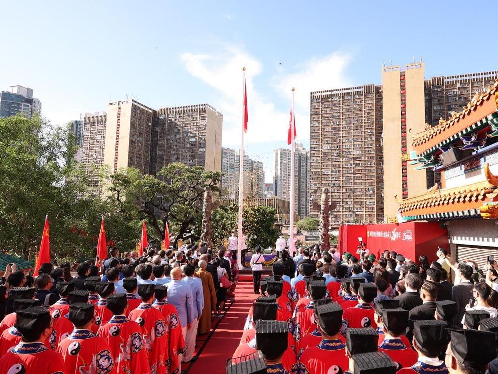 Commissioner of Police Raymond Siu Chak-yee said in a video message: "I am glad to see Wong Tai Sin Temple's love for the country and Hong Kong at such a historic moment."