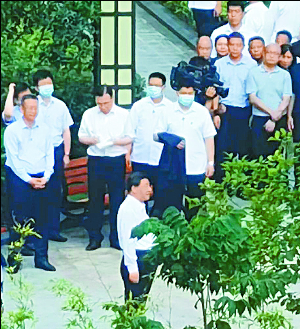 Xi was said to have been spotted at Zuoling New Town, Wuhan, Hubei province yesterday. A photo circulated online showed him visiting an agricultural park.