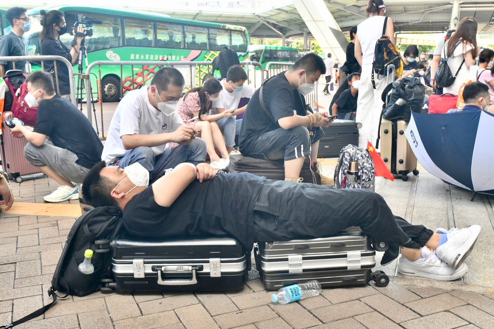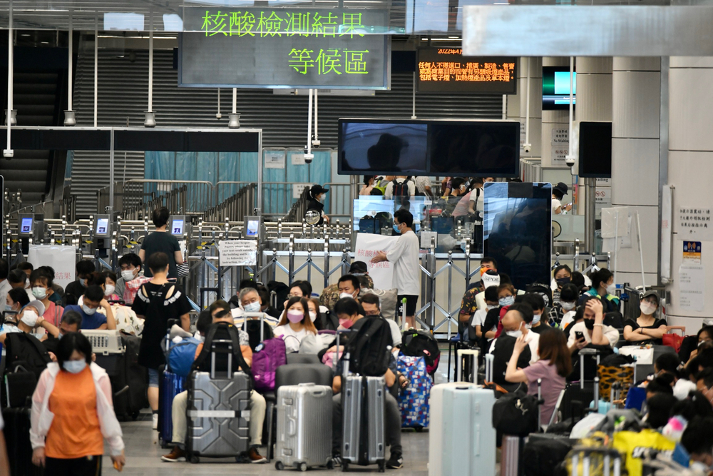 Travelers wait for their test results on the Hong Kong side of the Shenzhen Bay Port. SING TAO