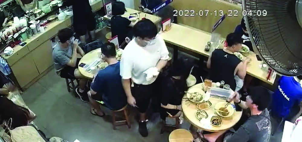 A man and his girlfriend went to Lok Wu Noodles in Tin Shui Wai's Kingswood Richly Plaza last Wednesday night, but they became angry with a waiter and accused him pushing his private parts into the woman's back several times.