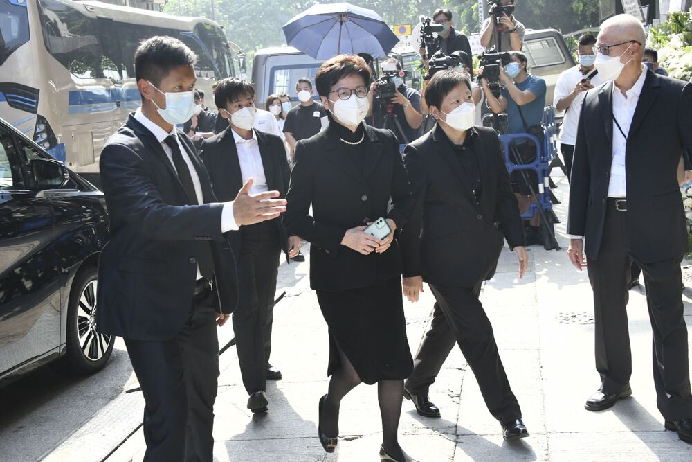 Among those at the funeral were Chief Executive John Lee Ka-chiu, his predecessors Leung Chun-ying and Carrie Lam Cheng Yuet-ngor, police commissioner Raymond Siu Chak-yee and former Democratic Party lawmaker Fred Li Wah-ming