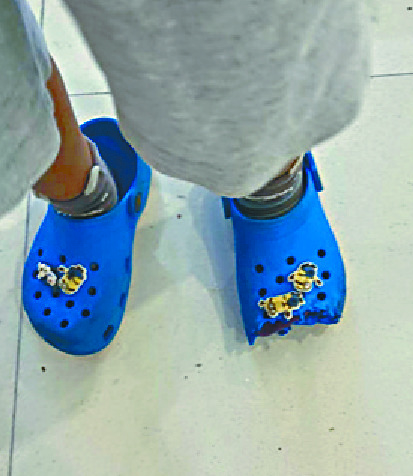 A boy almost lost his toes when his Crocs slipper was stuck at the edge of a moving escalator.The netizen said "it's shocking to see the photo" and reminded people to pay much attention when wearing similar shoes.