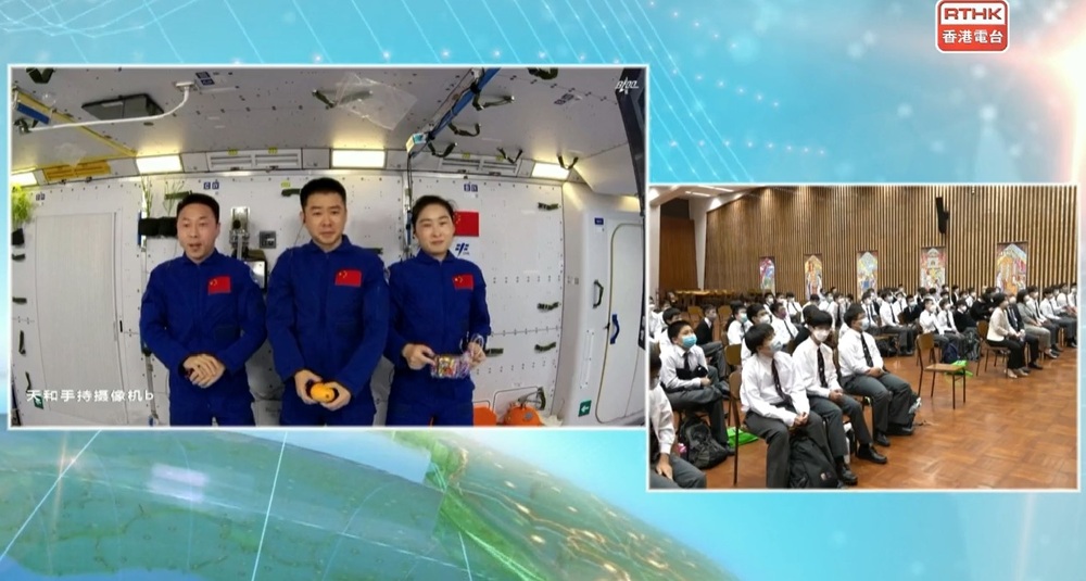 Hundreds of secondary school students in Hong Kong watched three Chinese astronauts conduct experiments at the Tiangong space station yesterday.