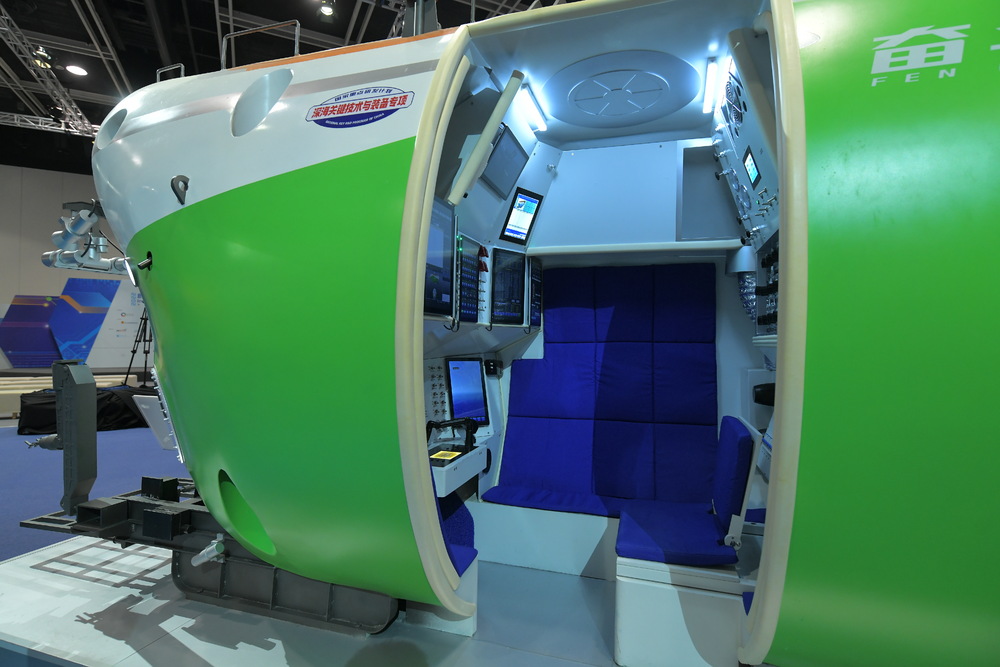 Visitors can walk inside a life-size replica of "Striver," the world's deepest-diving manned submersible watercraft made by China and have a close look at 49 grams of soil from the moon.