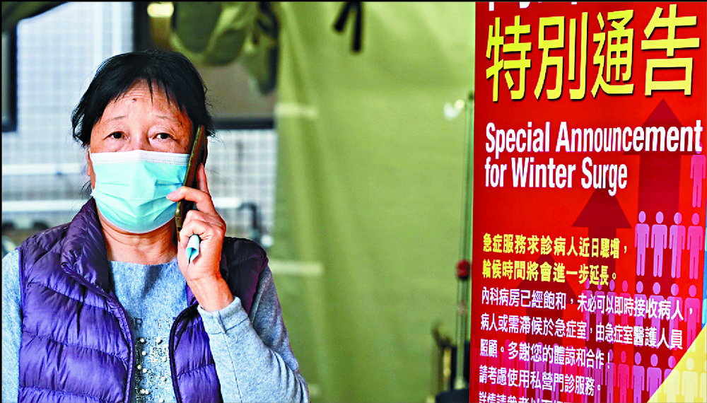 A "special announcement for winter surge" was put up at the entrance, telling patients that wards are saturated and patients may need to wait at the A&E for a long time.The authority said medical wards are 120 percent occupied.