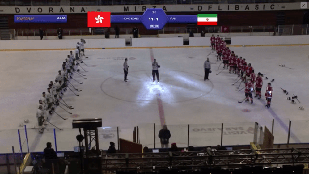 The protest song followed the Hong Kong team defeating Iran 11-1 in a Group B game of the International Ice Hockey Federation’s Ice Hockey World Championship Division III.