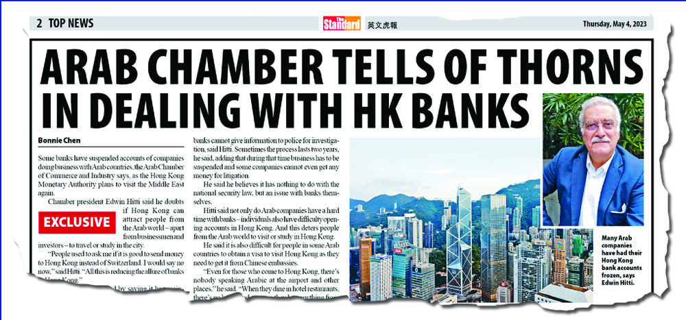 Hitti also said it is difficult for individual Arabs to open bank accounts in Hong Kong or for people living in Arab countries to obtain Hong Kong visas.