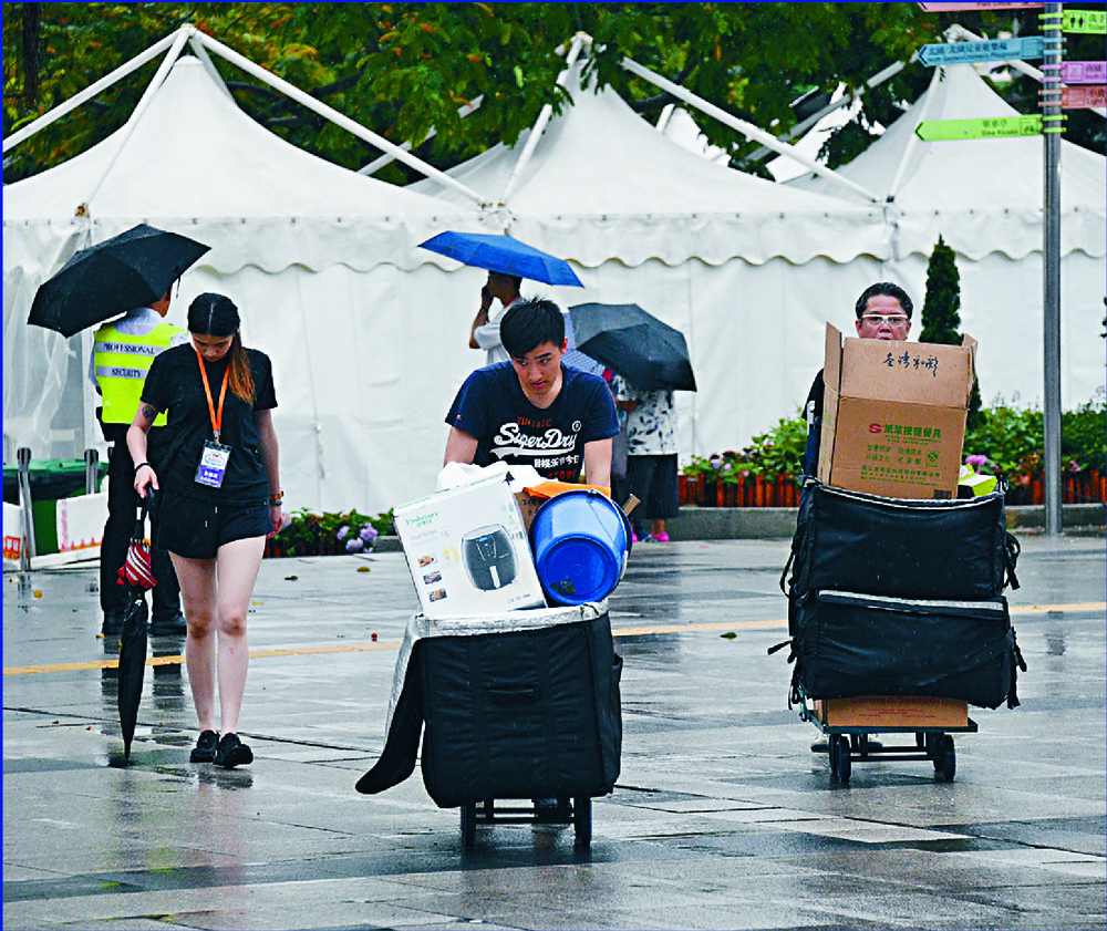 A stall operator selling baked goods said she had to give food worth thousands of dollars away after ceasing operation early.Another operator said they did not know how to handle unsold products. "It's impossible that the authorities didn't know about the weather [if they checked weather forecasts]," the operator said, adding that the government could have made appropriate arrangements like moving the fair indoors.