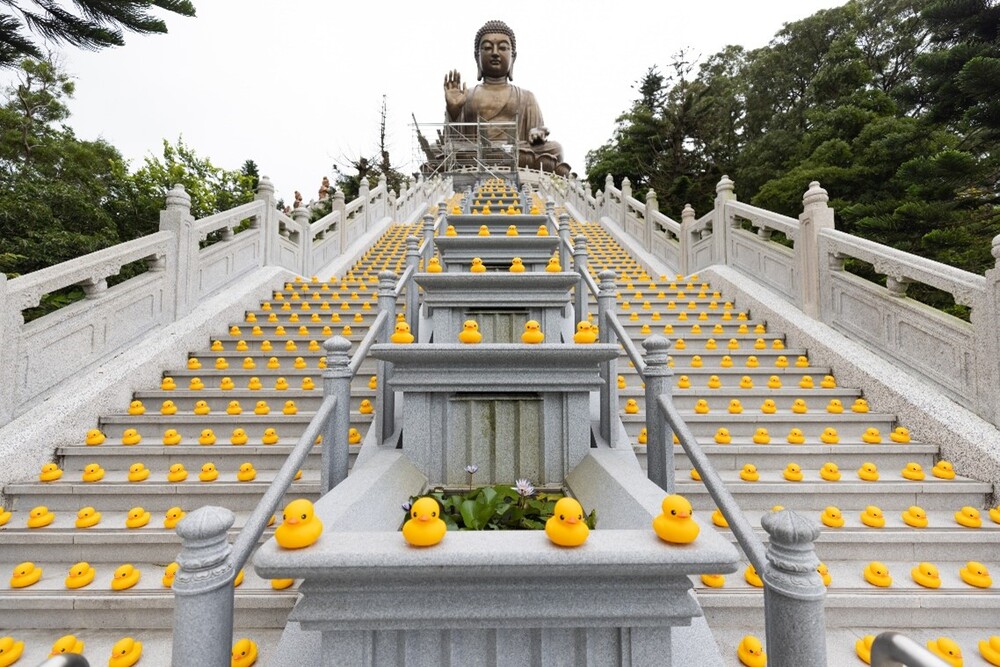 Meanwhile in a charity move, some 5,000 mini ducks were laid on the 268 steps going up to the Big Buddha in Lantau.
